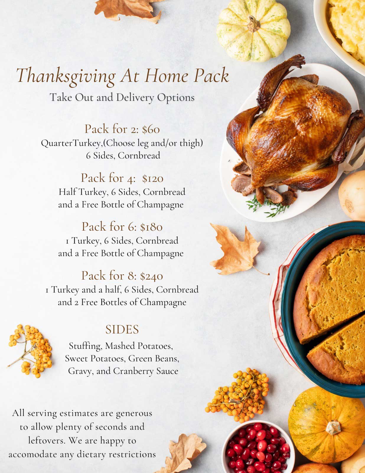 Pre-order Thanksgiving Pack for pickup or Delivery on Thanksgiving Day.